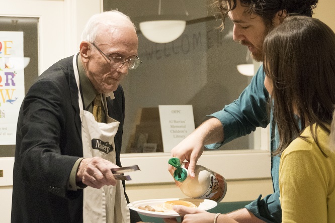 An important part of Christian life for us is reaching out to neighbors in need. The Inter-Faith Food Pantry provides an accessible neighborhood food source for SF/Marin Food Bank clients. Each Saturday, one of five host churches uses Old First Presbyterian Church to provide a week's worth of groceries to around 350 of the city's families. Once a month, we serve a free, homemade, hot, community dinner for neighbors, housed and un-housed! Volunteers cook and serve the meal to guests who are invited to sit with us at tables in our FellowshipHall.